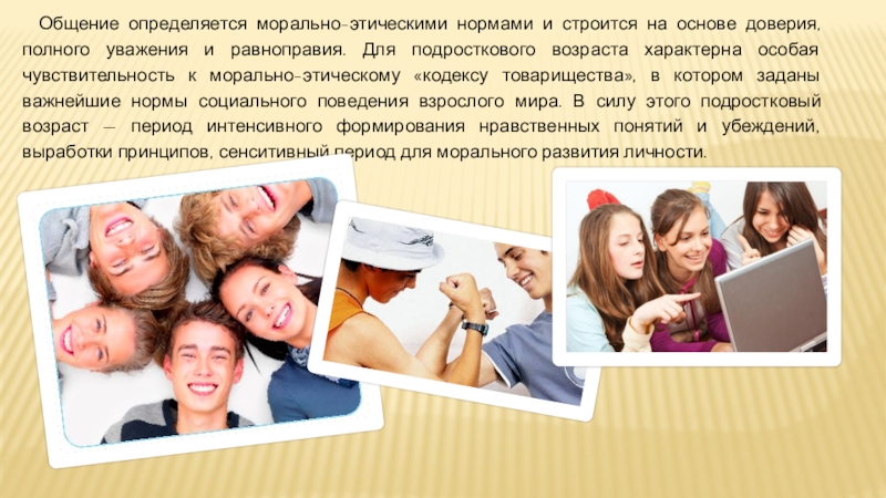Слайд 25Общение определяется морально-этическими нормами и строится на основе доверия, полного уважения