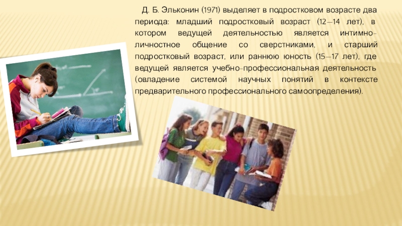 Слайд 6Д. Б. Эльконин (1971) выделяет в подростковом возрасте два периода: младший