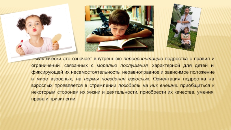 Слайд 12Фактически это означает внутреннюю переориентацию подростка с правил и ограничений, связанных