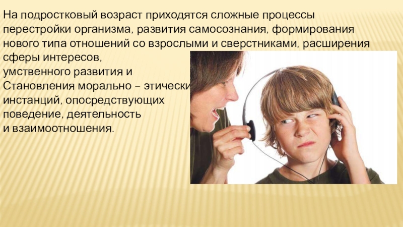 Слайд 3На подростковый возраст приходятся сложные процессы перестройки организма, развития самосознания, формирования
