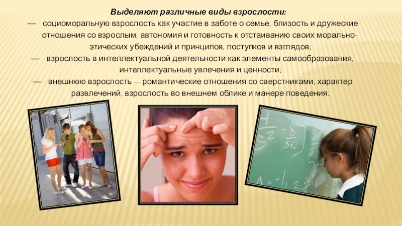 Слайд 15Выделяют различные виды взрослости: