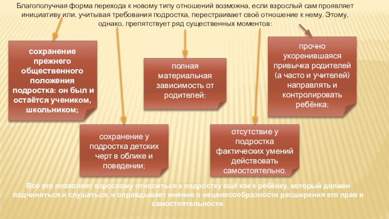 проявляет инициативу или, учитывая требования подростка, перестраивает своё отношение к нему. Этому, однако, препятствует ряд существенных моментов: