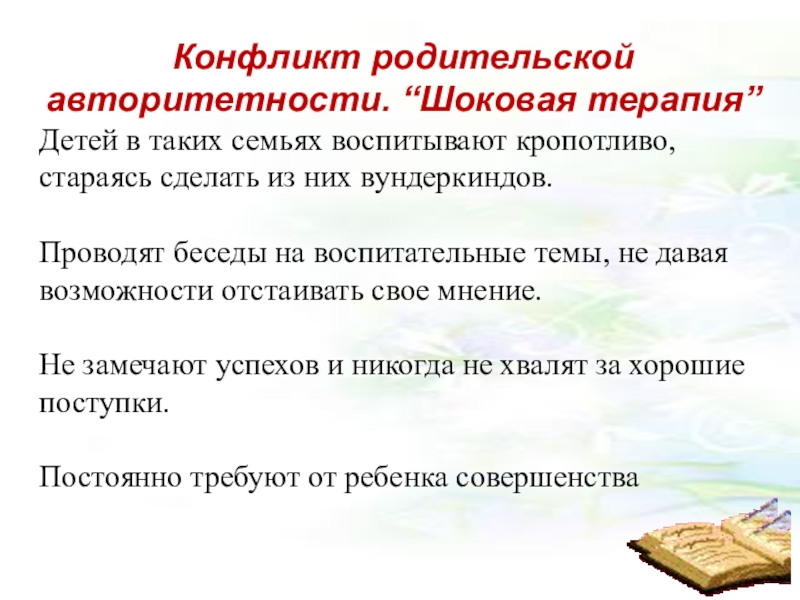 Слайд 12Конфликт родительской авторитетности. “Шоковая терапия”