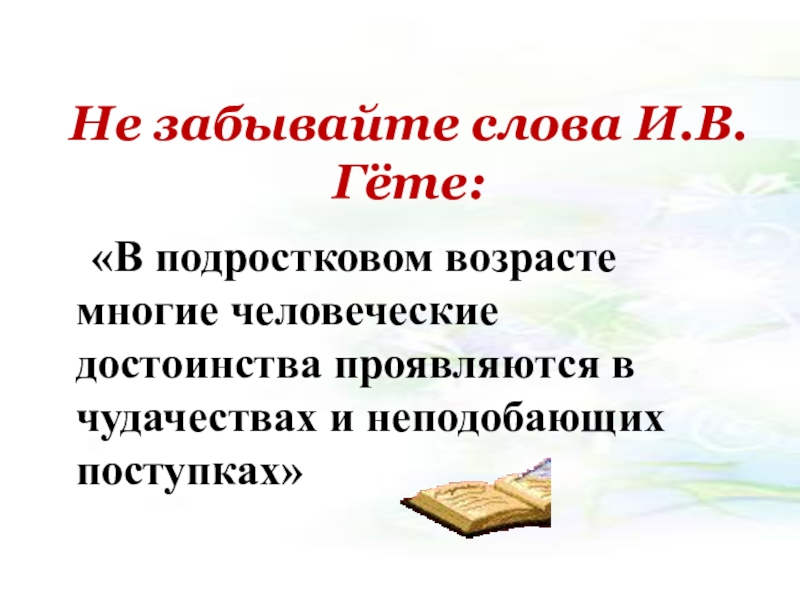Слайд 6Не забывайте слова И.В. Гёте: