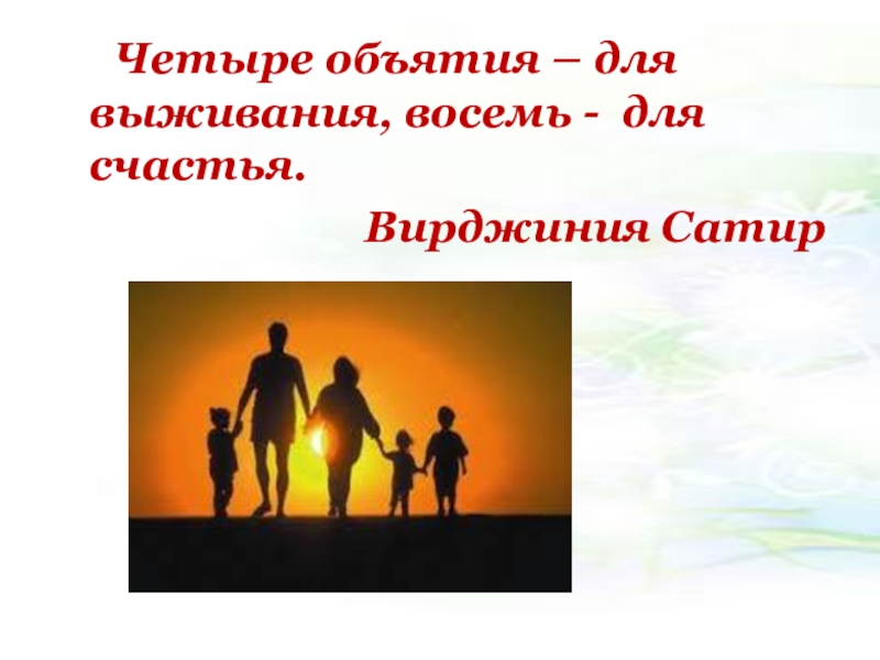 Слайд 19 Четыре объятия – для выживания, восемь -