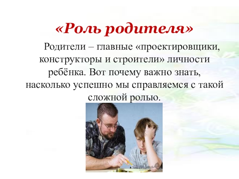 Слайд 5 «Роль родителя»