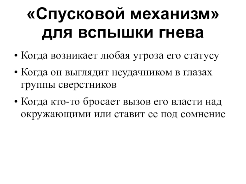 Слайд 26«Спусковой механизм» для вспышки гнева