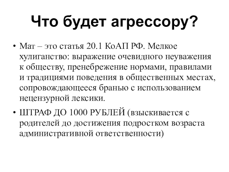 Мат – это статья 20.1 КоАП РФ. Мелкое хулиганство: