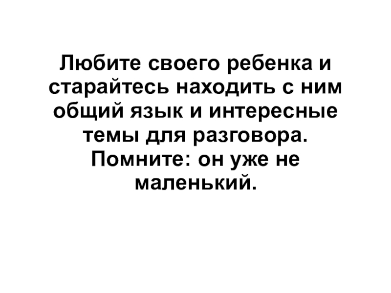 Слайд 31Любите своего ребенка и старайтесь находить с ним общий язык и