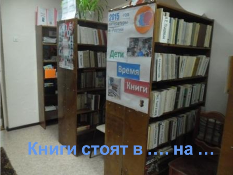 Слайд 9Книги стоят в …. на …