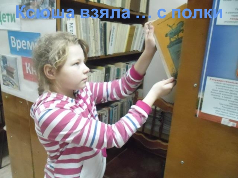 Слайд 13Ксюша взяла … с полки