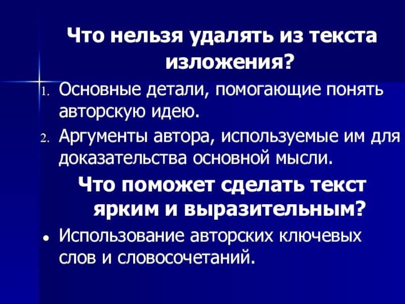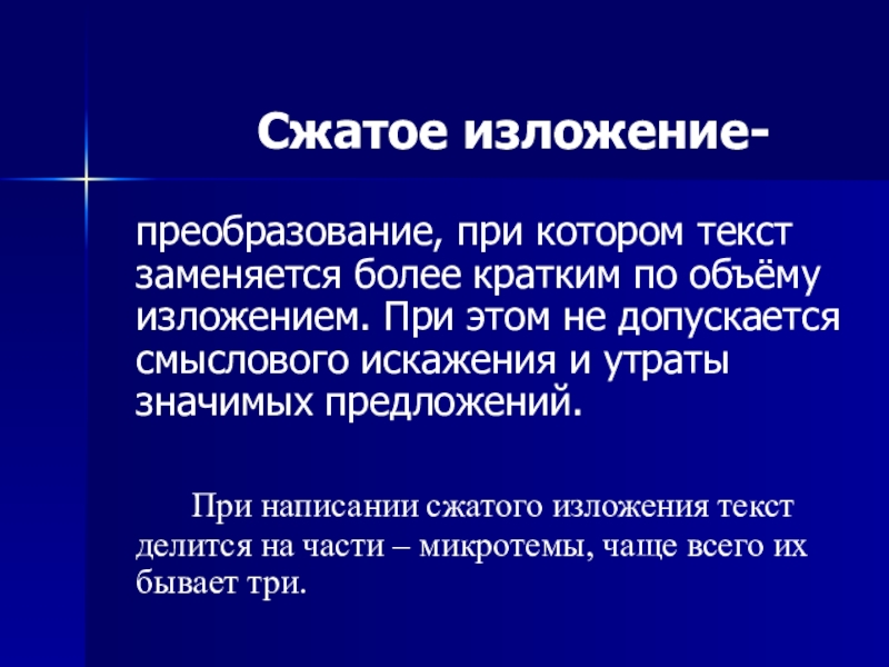изложением. При этом не допускается смыслового искажения и утраты значимых предложений.