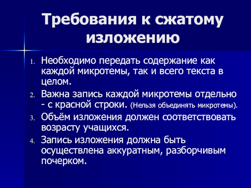 Запись изложения должна быть осуществлена аккуратным, разборчивым почерком.