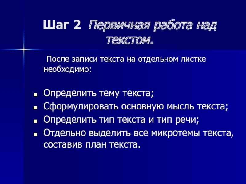 Слайд 7Шаг 2 Первичная работа над текстом.