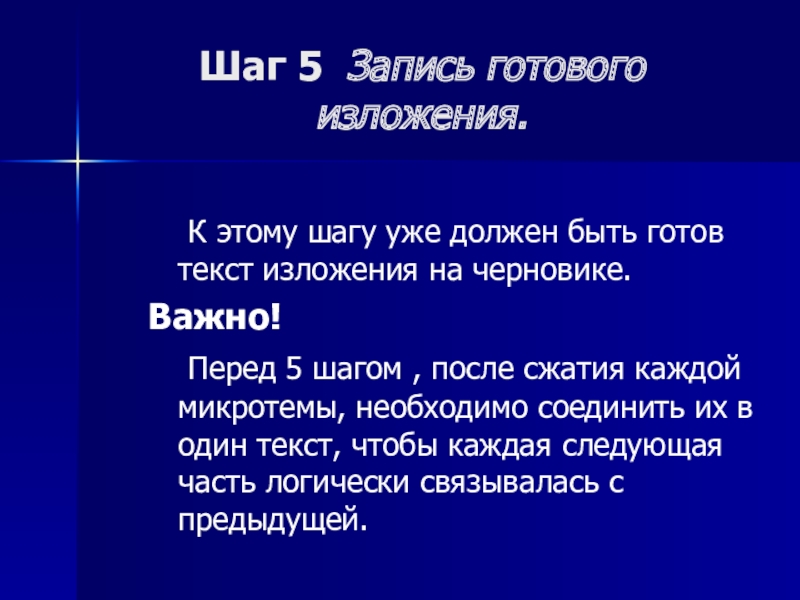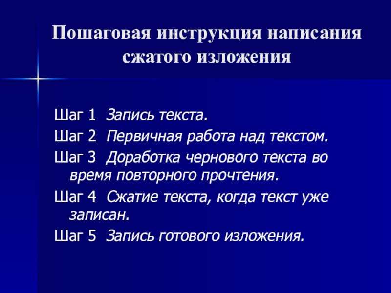 Слайд 5Пошаговая инструкция написания сжатого изложения