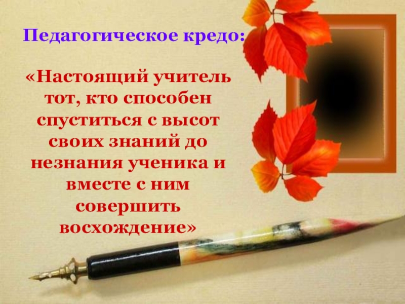 Педагогическое кредо:«Настоящий учитель тот, кто способен спуститься с высот своих знаний до незнания ученика и вместе с