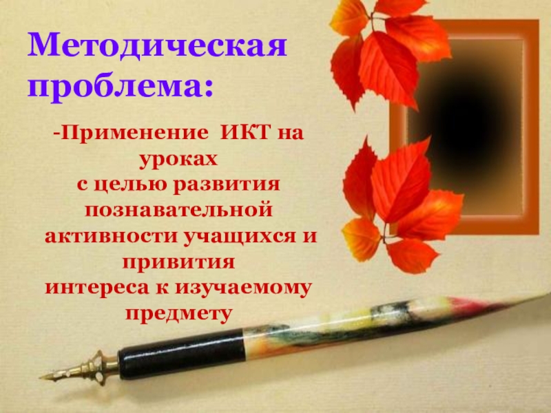 ёМетодическая проблема:-Применение ИКТ на урокахс целью развития познавательной активности учащихся и привития интереса к изучаемому предмету