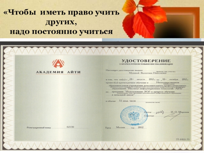 «Чтобы иметь право учить других, надо постоянно учиться самому»