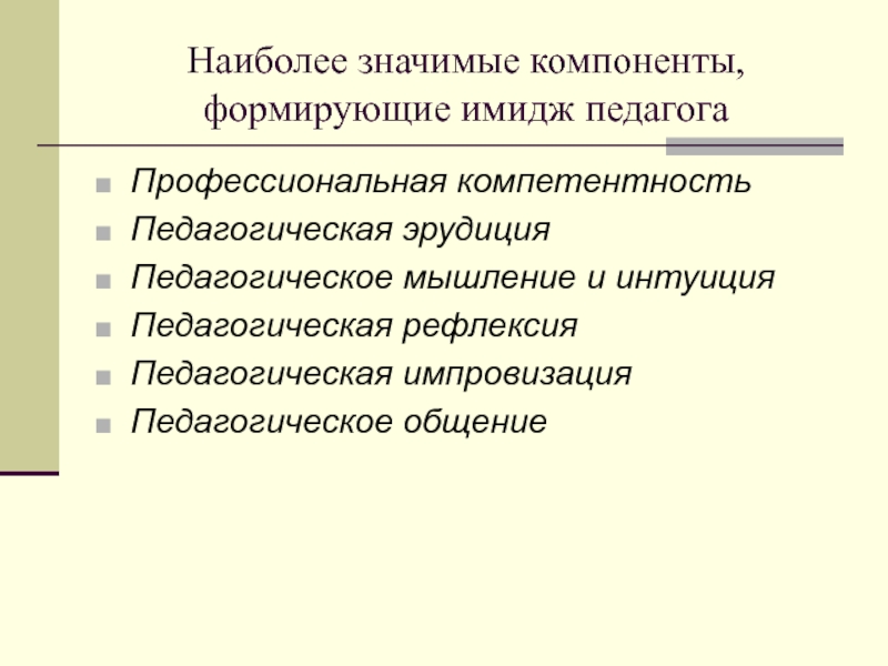 Слайд 8Наиболее значимые компоненты, формирующие имидж педагога
