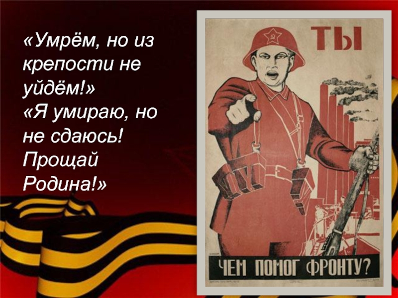 «Умрём, но из крепости не уйдём!»«Я умираю, но не сдаюсь! Прощай Родина!»