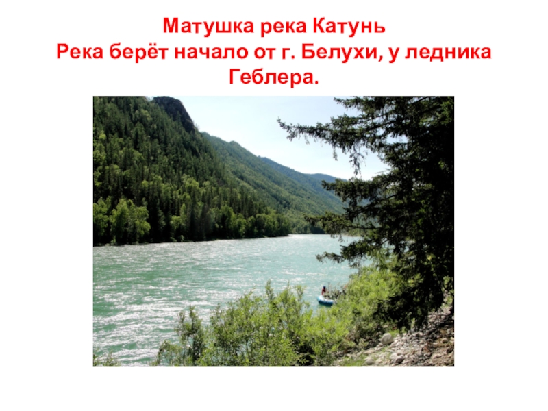 Слайд 7Матушка река Катунь Река берёт начало от г. Белухи, у ледника Геблера.