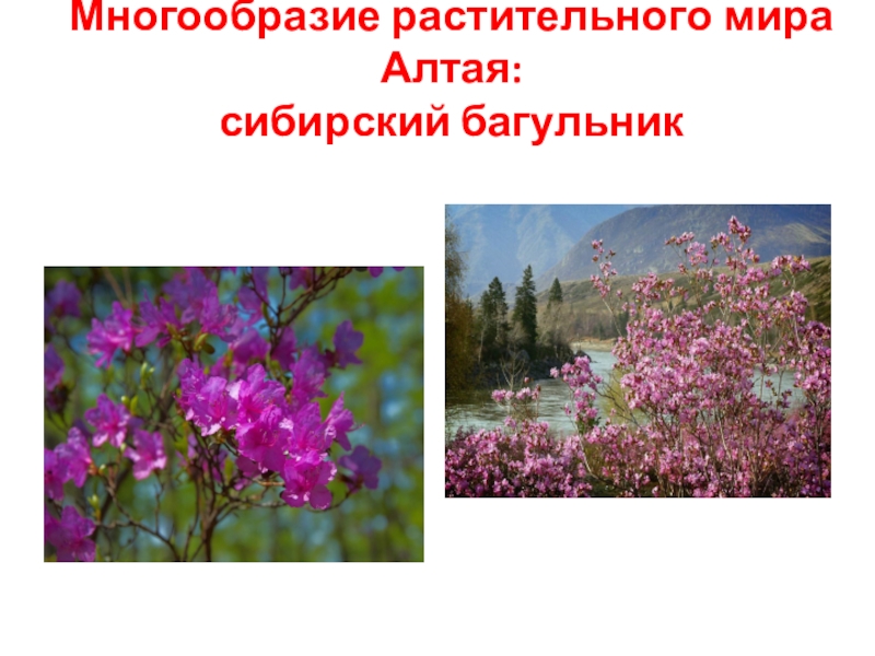 Слайд 13Многообразие растительного мира Алтая: сибирский багульник