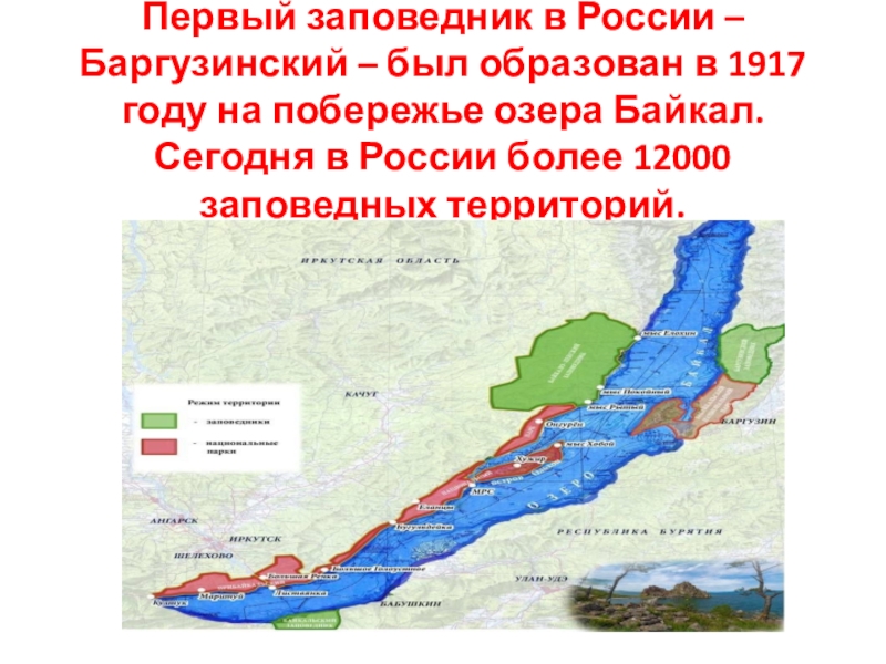 году на побережье озера Байкал. Сегодня в России более 12000 заповедных территорий.