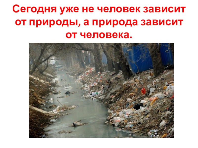 Слайд 37Сегодня уже не человек зависит от природы, а природа зависит от