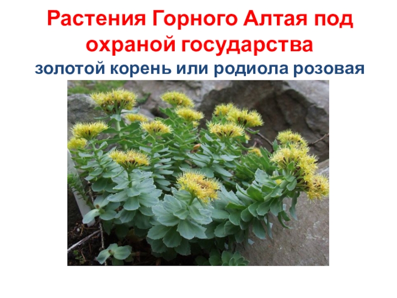 Слайд 18Растения Горного Алтая под охраной государства золотой корень или родиола розовая