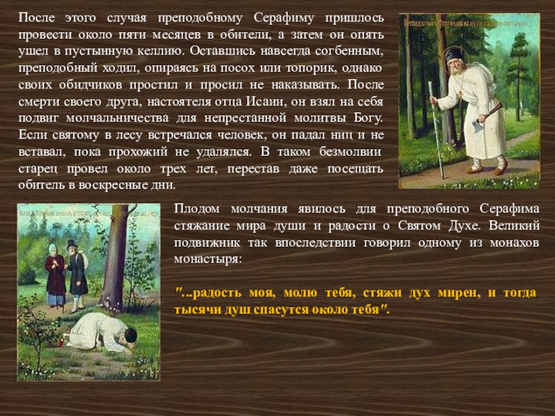 Слайд 14После этого случая преподобному Серафиму пришлось провести около пяти месяцев в