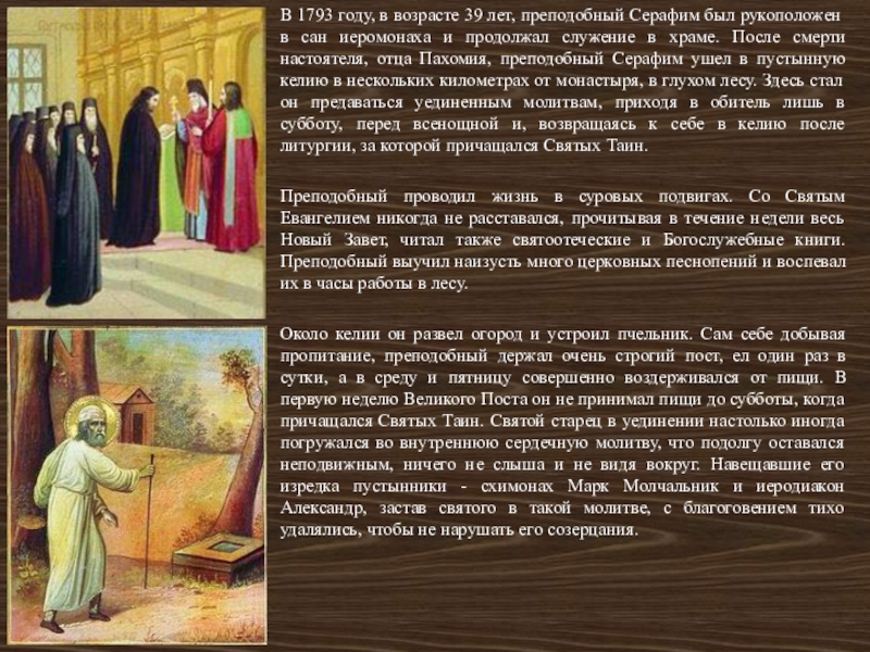 Слайд 10В 1793 году, в возрасте 39 лет, преподобный Серафим был рукоположен