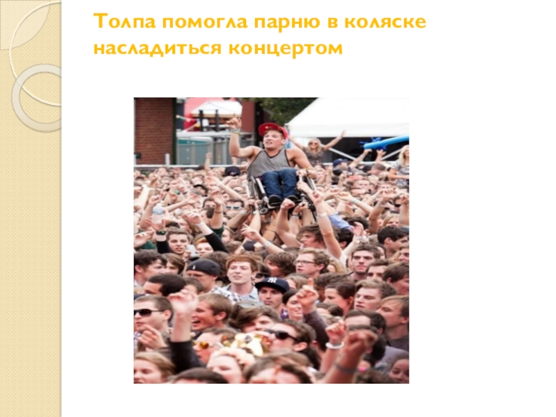 Слайд 11Толпа помогла парню в коляске насладиться концертом