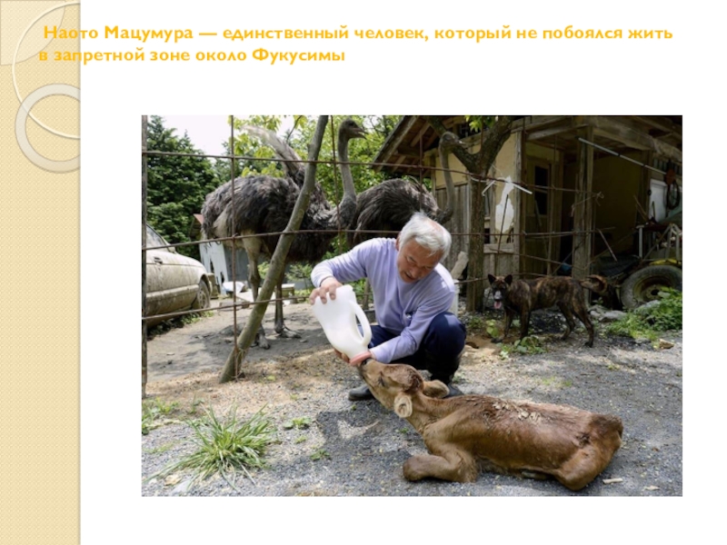 Слайд 15 Наото Мацумура — единственный человек, который не побоялся жить в запретной зоне около Фукусимы