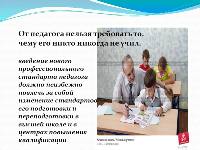 Слайд 8От педагога нельзя требовать то, чему его никто никогда не учил.