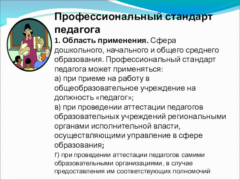 образования. Профессиональный стандарт педагога может применяться: