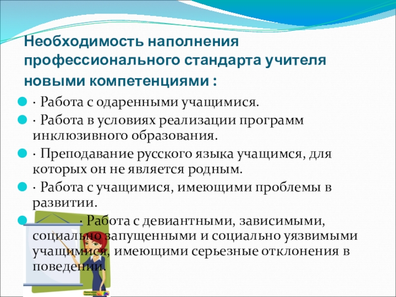 Необходимость наполнения профессионального стандарта учителя новыми компетенциями :