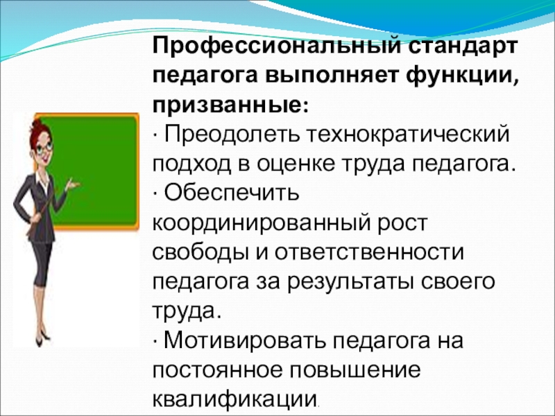 Слайд 11Профессиональный стандарт педагога выполняет функции, призванные: