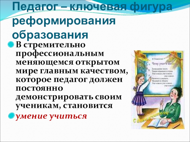Слайд 3Педагог – ключевая фигура реформирования образования