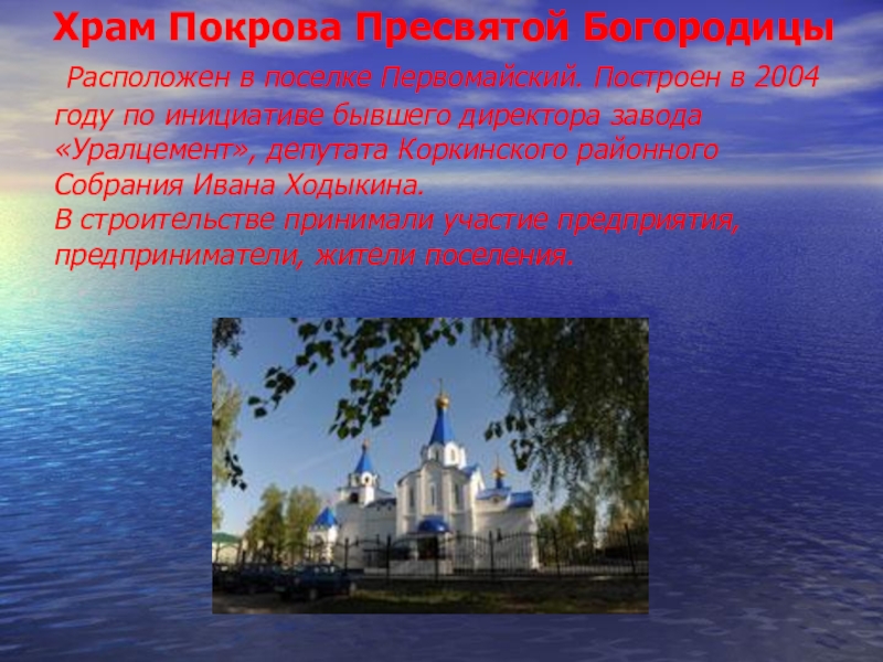 Слайд 5Храм Покрова Пресвятой Богородицы  Расположен в поселке Первомайский. Построен в 2004