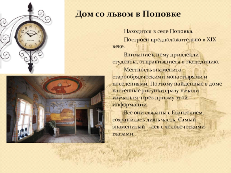 Местность знаменита старообрядческими монастырями и поселениями. Поэтому найденные в доме настенные рисунки сразу начали изучаться через призму этой информации.