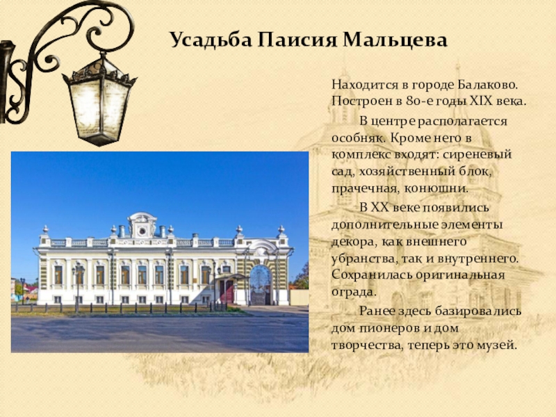 Ранее здесь базировались дом пионеров и дом творчества, теперь это музей.