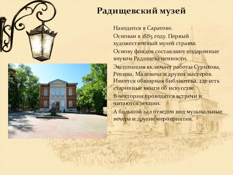 Основу фондов составляют подаренные внуком Радищева ценности.