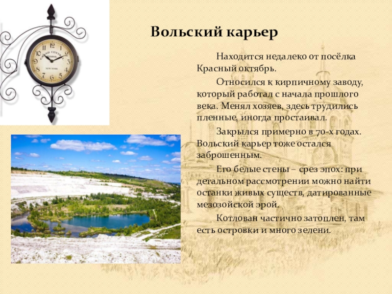 Закрылся примерно в 70-х годах. Вольский карьер тоже остался заброшенным.