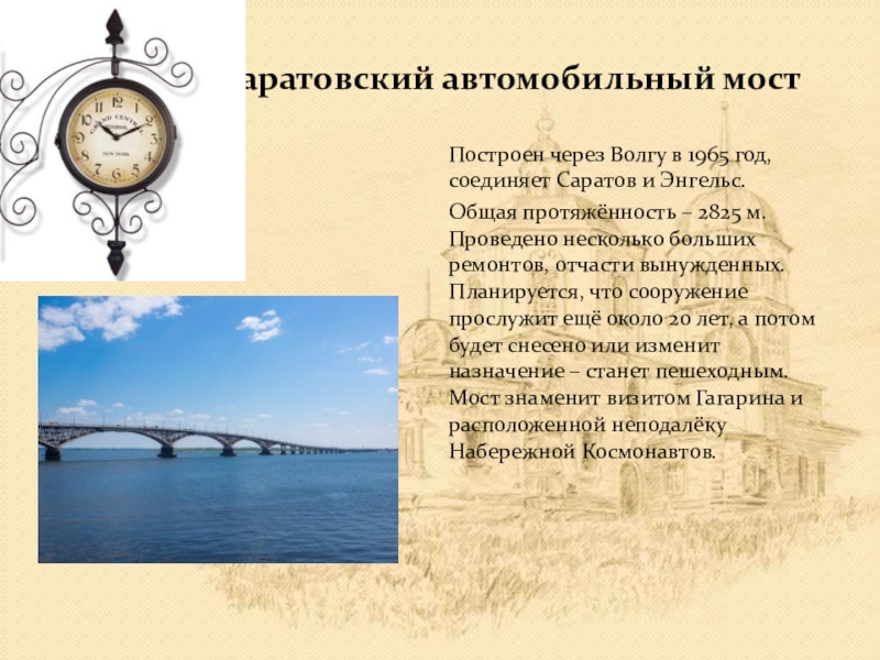 Построен через Волгу в 1965 год, соединяет Саратов и