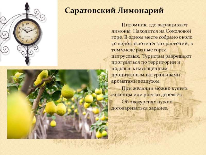 Ещё один удивительный объект – Саратовский Лимонарий. Здесь выращивают цитрусовые и готовы поделиться секретами производства.