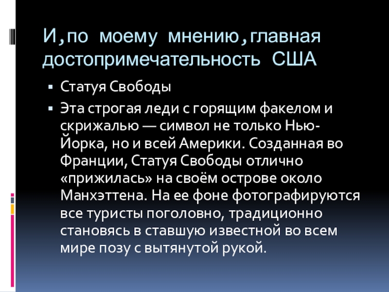 Слайд 25И,по моему мнению,главная достопримечательность США