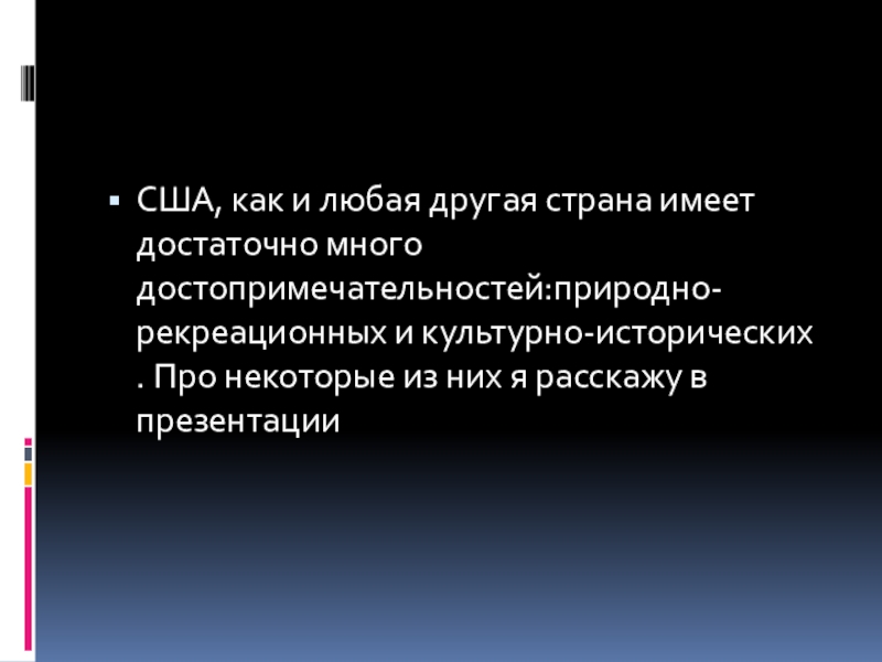 США, как и любая другая страна имеет достаточно много достопримечательностей:природно-рекреационных и