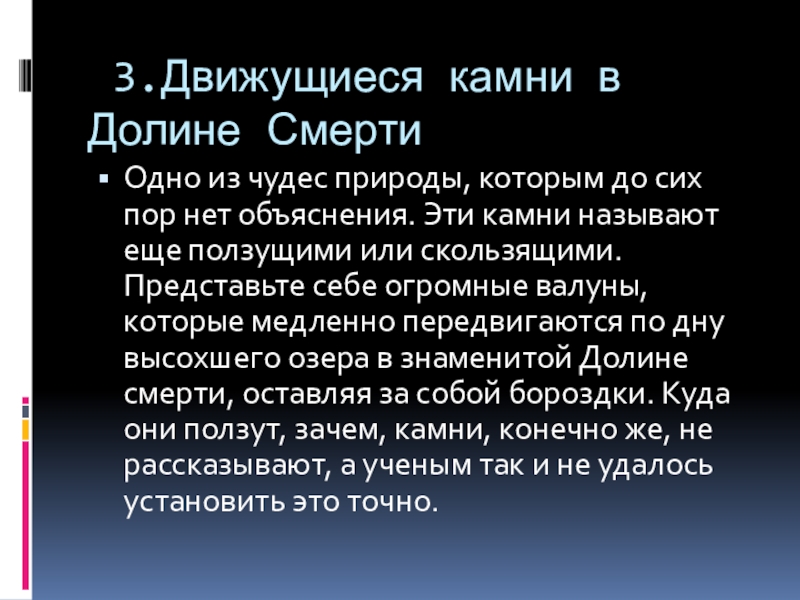 Слайд 11 3.Движущиеся камни в Долине Смерти