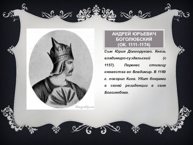Слайд 16Андрей Юрьевич Боголюбский (ок. 1111-1174)