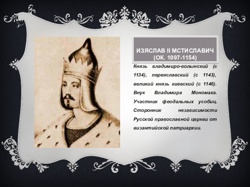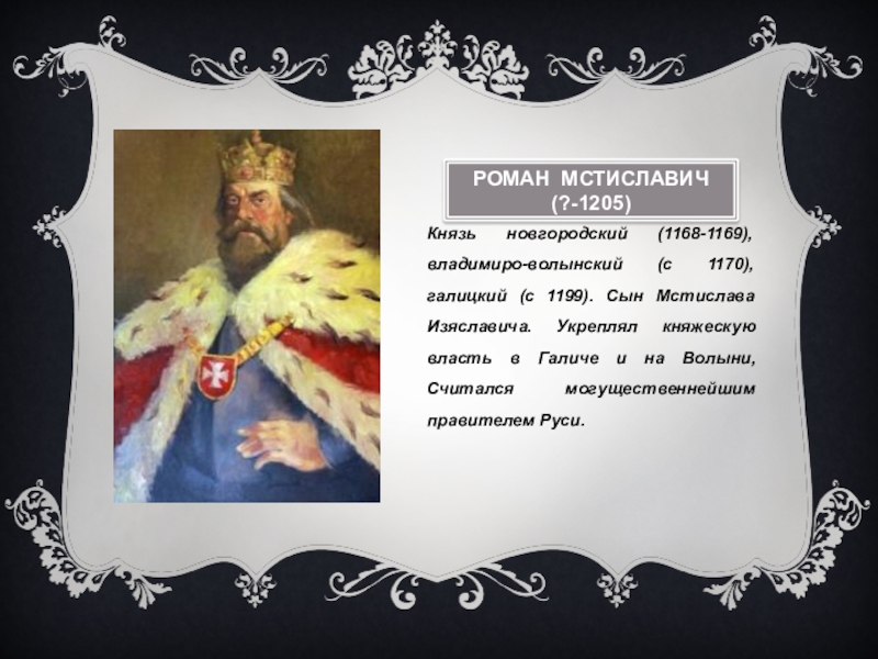 Сын Мстислава Изяславича. Укреплял княжескую власть в Галиче и на Волыни, Считался могущественнейшим правителем Руси.